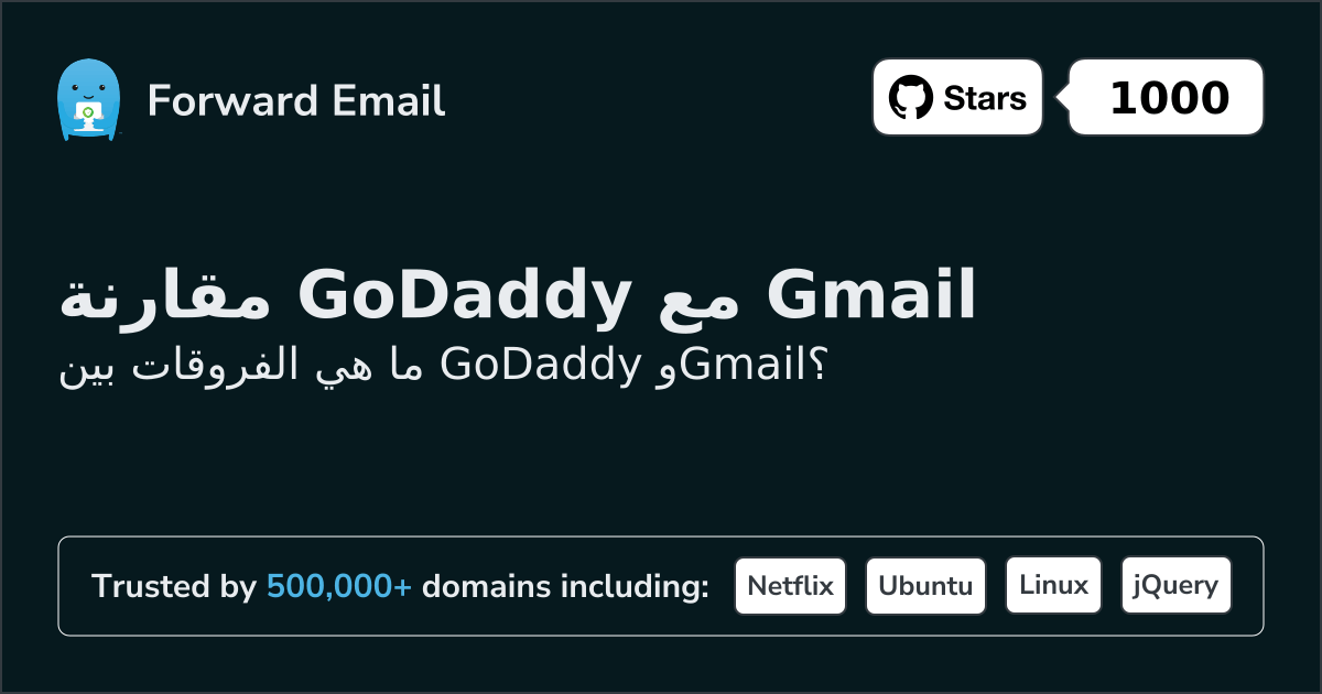 GoDaddy"إنشاء بريد إلكتروني احترافي باستخدام نطاقك" | مقابل | Gmail"بريد إلكتروني آمن وذكي وسهل الاستخدام" |