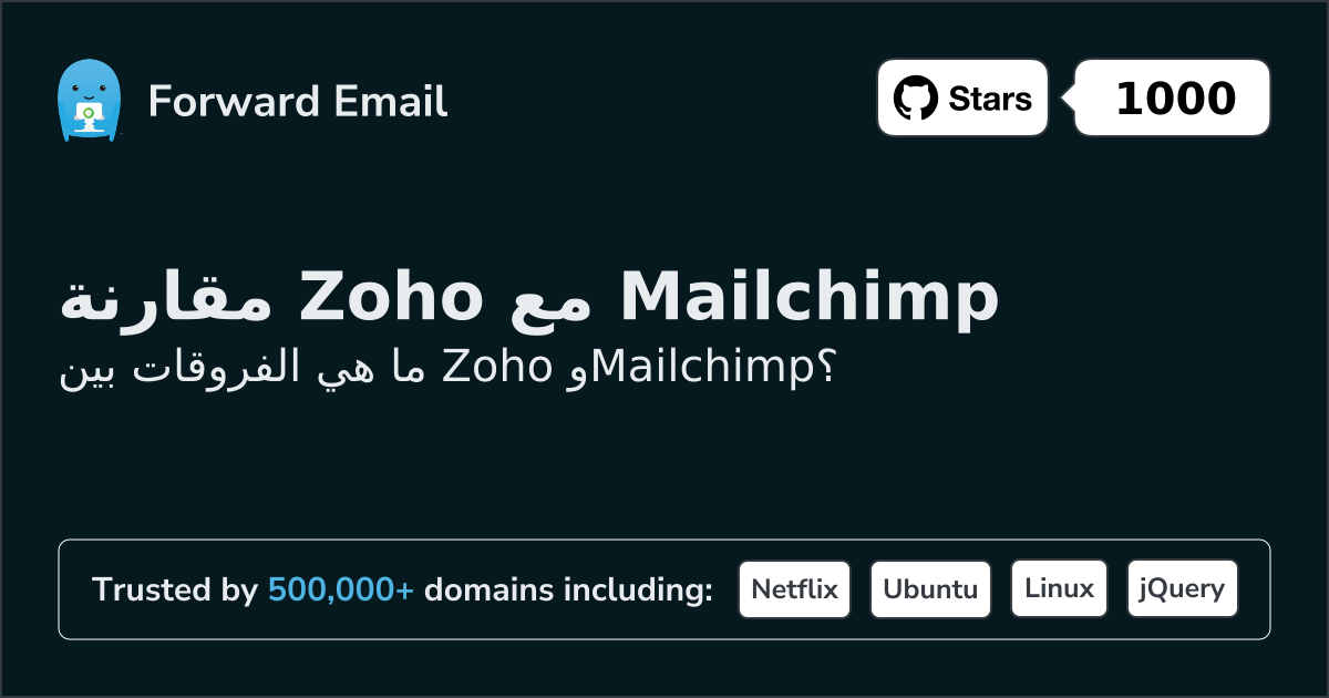 Zoho"بريد إلكتروني تجاري آمن لمنظمتك" | مقابل | Mailchimp"تحويل رسائل البريد الإلكتروني إلى إيرادات" |