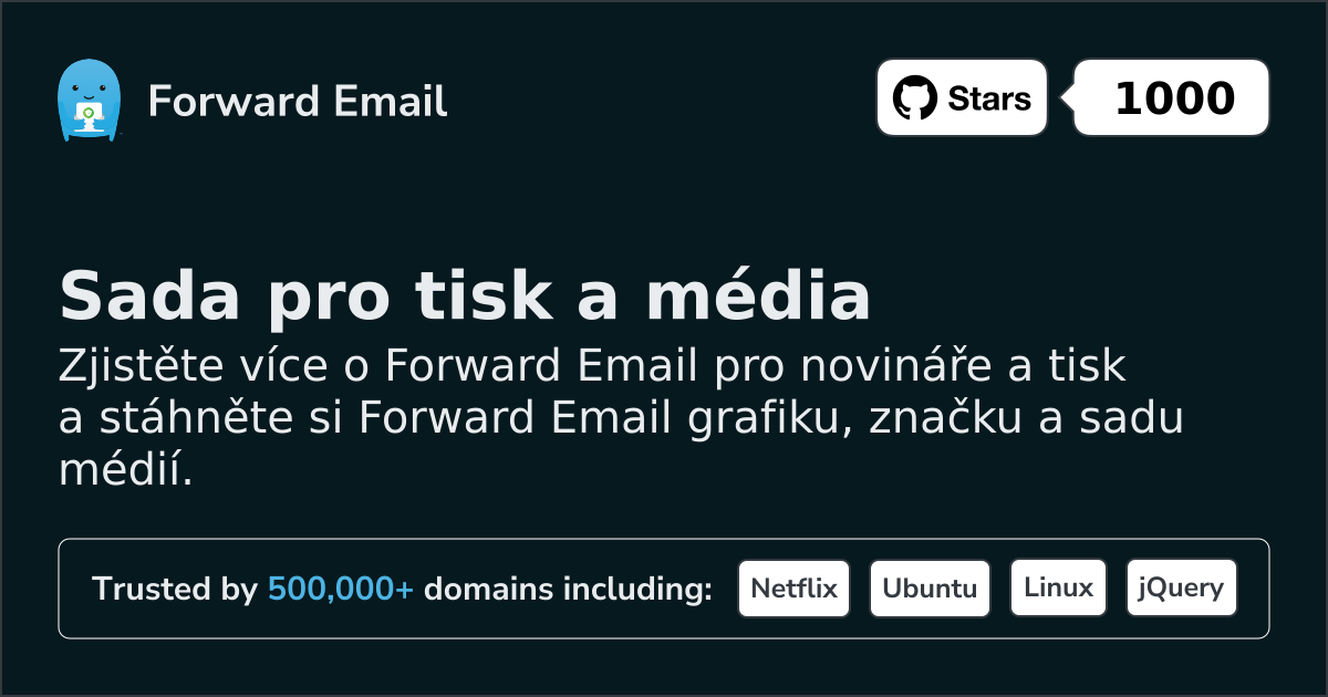 Pokud jste novinář, tiskový pracovník nebo zástupce médií a chcete s námi hovořit, položit nám otázky nebo se dozvědět více, kontaktujte nás prosím na adrese press@forwardemail.net.