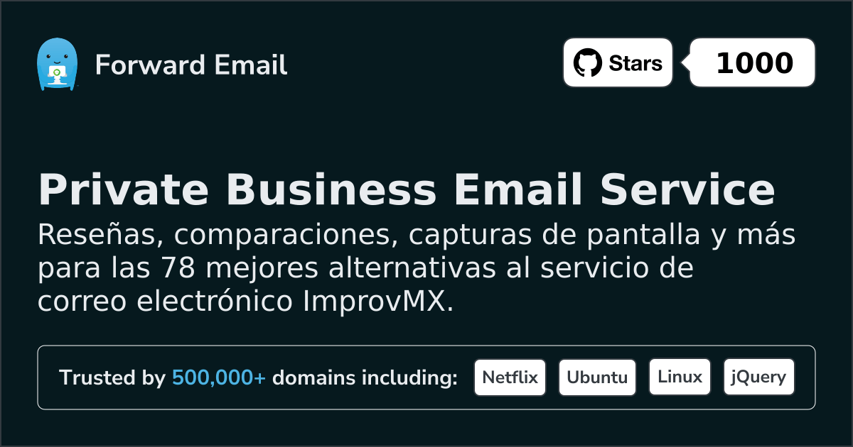 Reseñas, comparaciones, capturas de pantalla y más para las 78 arriba alternativas al servicio de correo electrónico ImprovMX.