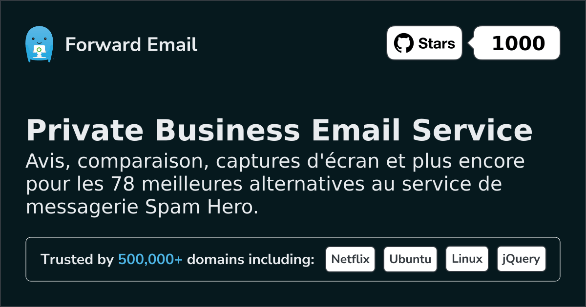 Avis, comparaison, captures d'écran et plus encore pour les 78 remarquable alternatives au service de messagerie Spam Hero.