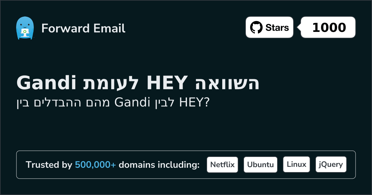 Gandi"אנו מנהלים מעל 780,000 כתובות דוא"ל בשרתי הדוא"ל שלנו, למה לא שלכם?" | לעומת | HEY"סוף סוף תיקנו את האימייל והיומן שלך!" |