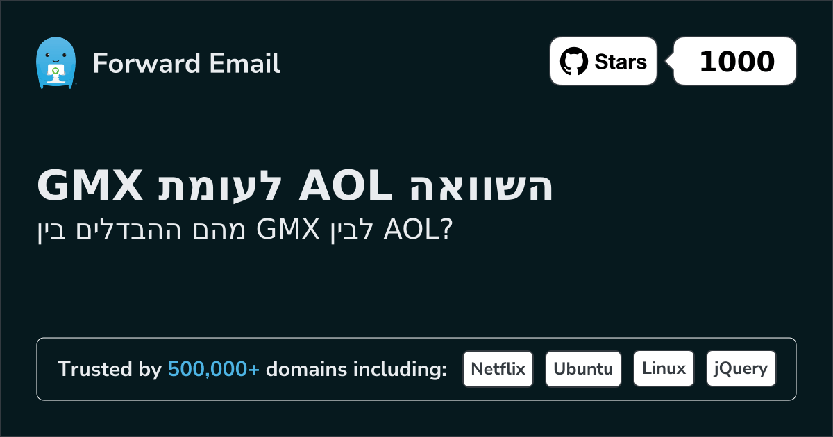 GMX"צור חשבון דוא"ל חינמי במהירות" | לעומת | AOL"AOL Mail הוא שירות דוא"ל חינמי מבוסס אינטרנט המסופק על ידי AOL, חטיבה של Yahoo! Inc." |