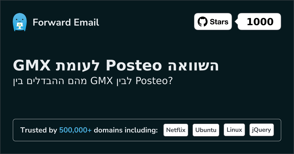 GMX"צור חשבון דוא"ל חינמי במהירות" | לעומת | Posteo"ירוק, מאובטח, ללא פרסומות" |