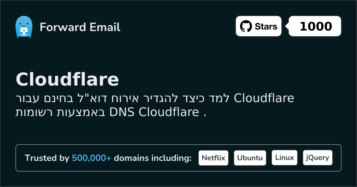 למד כיצד להגדיר אירוח דוא"ל בחינם עבור Cloudflare באמצעות רשומות DNS Cloudflare .