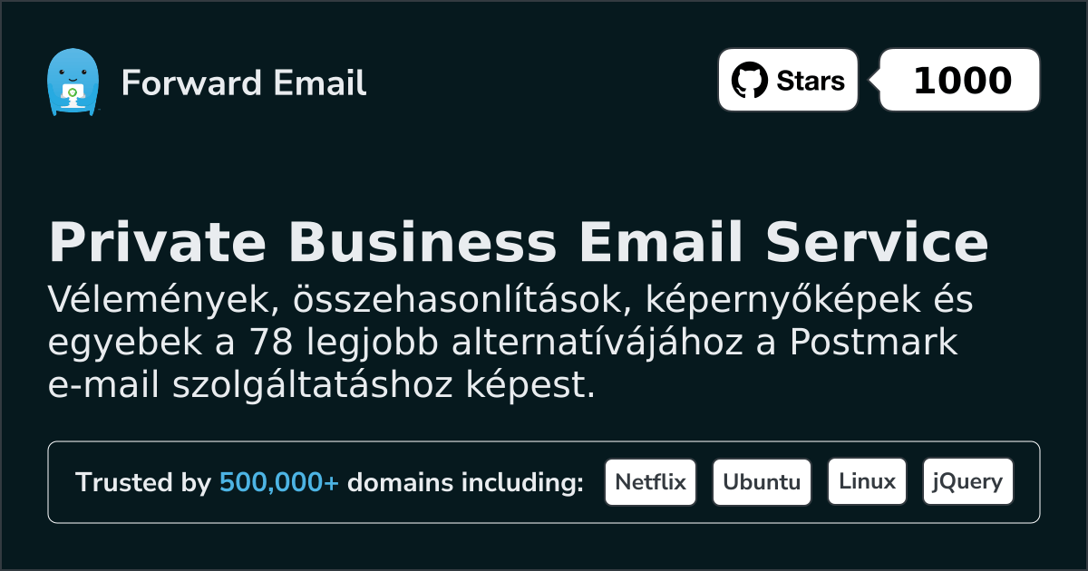 Forward Email⭐ JavasoltE-mail mindenkinek | $3/mo | 10 GB pooled | 50 MB | Igen | Igen | Igen | Igen | TTI | Igen | Igen | Igen | Igen | ⚠️ Opt-in | Igen | Igen |