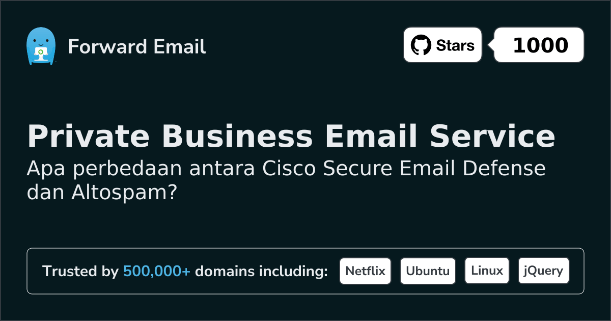 Kami merekomendasikan Teruskan Email sebagai alternatif terbaik untuk Cisco Secure Email Defense.