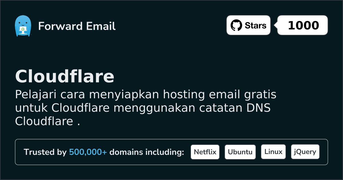Pelajari cara menyiapkan hosting email gratis untuk Cloudflare menggunakan catatan DNS Cloudflare .