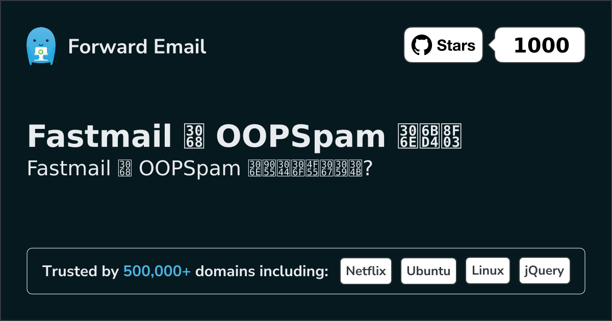 Fastmail"あなた専用の高速でプライベートなメール" | 対 | OOPSpam"スパムと不正行為の検出を自動化" |