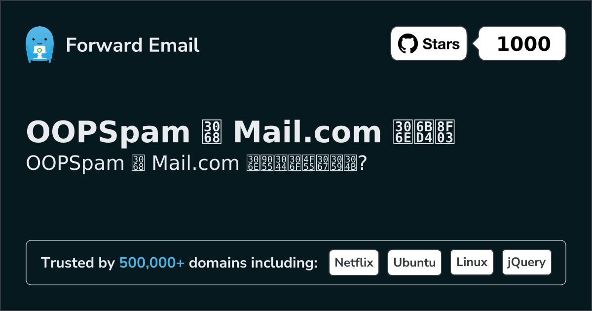 OOPSpam"スパムと不正行為の検出を自動化" | 対 | Mail.com"無料メール – ニーズに合わせてカスタマイズ" |