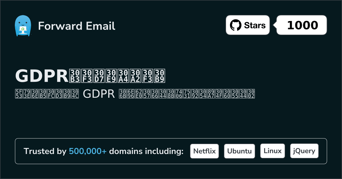 Forward Email は、お客様のデータの保護に尽力しているプライバシー重視の企業です。