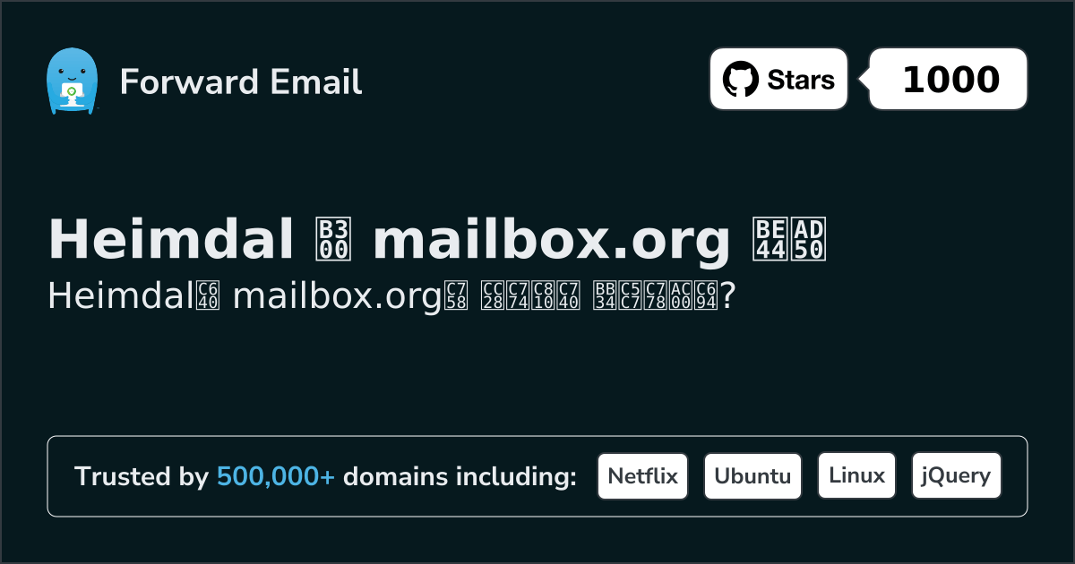 Heimdal"하나의 플랫폼. 완벽한 보안." | 대 | mailbox.org"독일에서 만든 개인 정보 보호" |