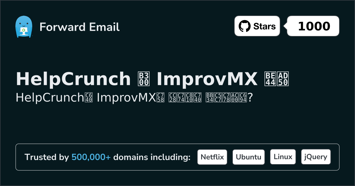 HelpCrunch"귀사의 모든 비즈니스 요구 사항을 충족하는 고객 서비스 소프트웨어" | 대 | ImprovMX"도메인 이름에 대한 무료 이메일 별칭을 만드세요" |
