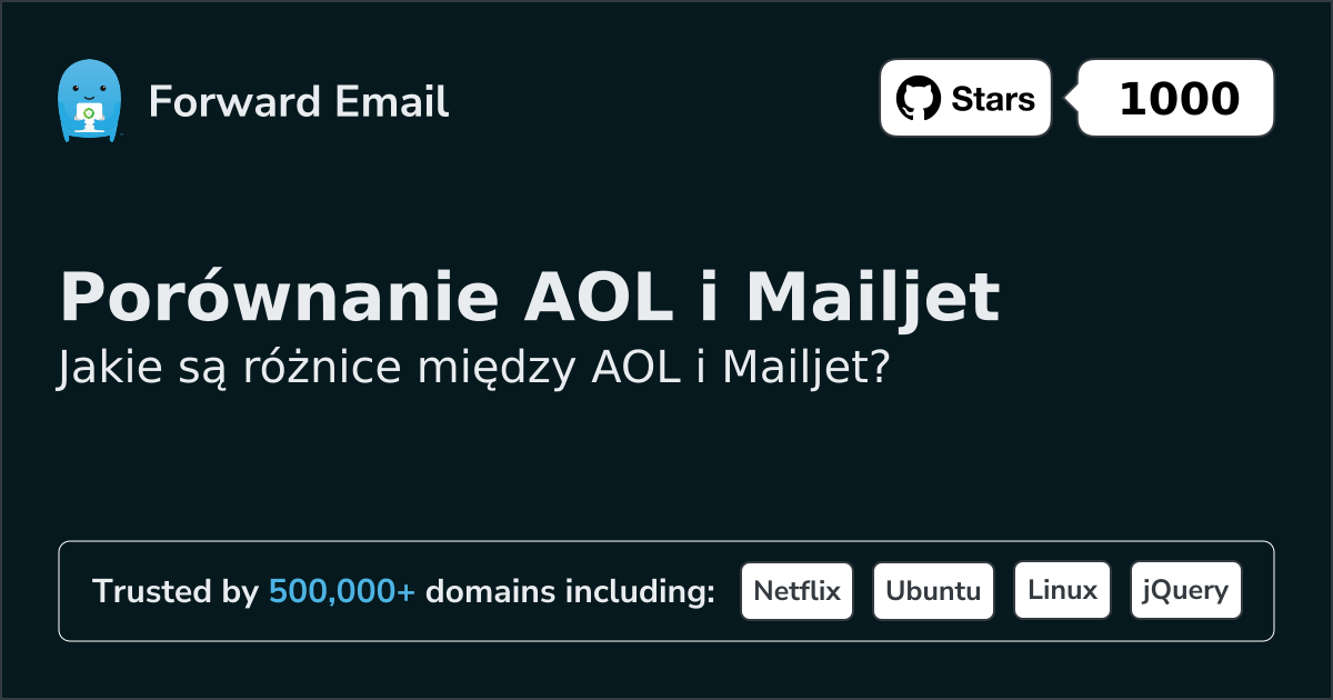 20 faktów w porównaniu| AOL | przeciwko | Mailjet |