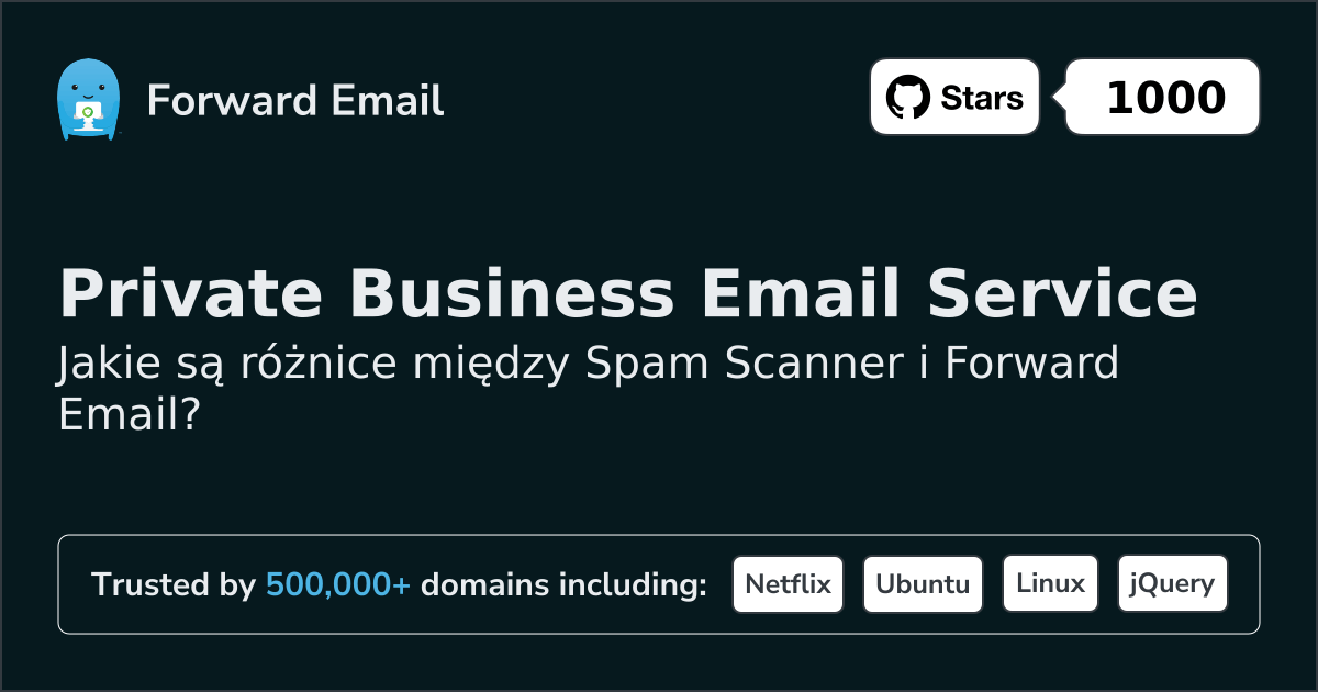 Spam Scanner"Spam Scanner to najlepsza usługa antyspamowa, filtrująca wiadomości e-mail i zapobiegająca phishingowi" | przeciwko | Forward Email⭐ Preferowany "E-mail dla każdego" |