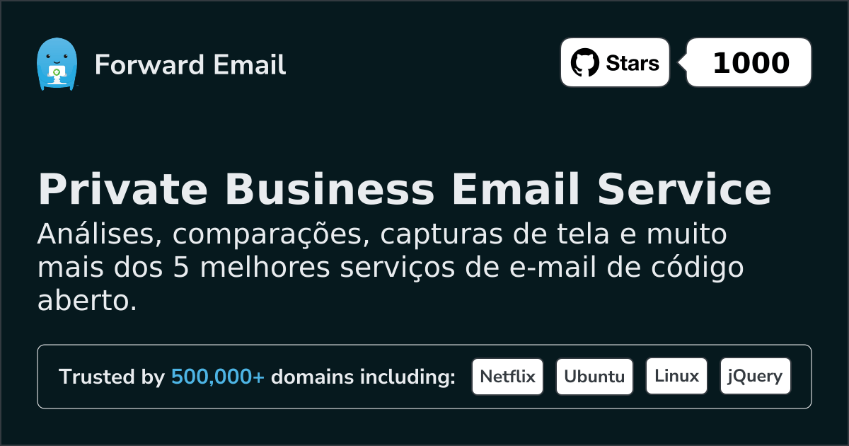 Forward Email é o melhor e único serviço de e-mail 100% de código aberto.