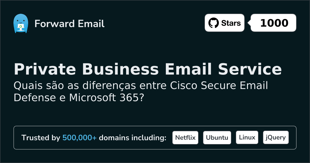 - Comparação Cisco Secure Email Defense vs Forward Email (2026)