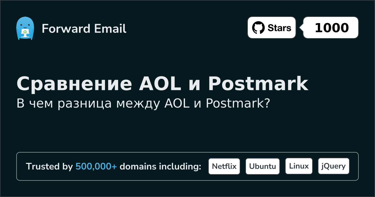 AOL"AOL Mail — бесплатная веб-служба электронной почты, предоставляемая AOL, подразделением Yahoo! Inc." | против. | Postmark"Служба доставки электронной почты, которая действительно нравится людям" |