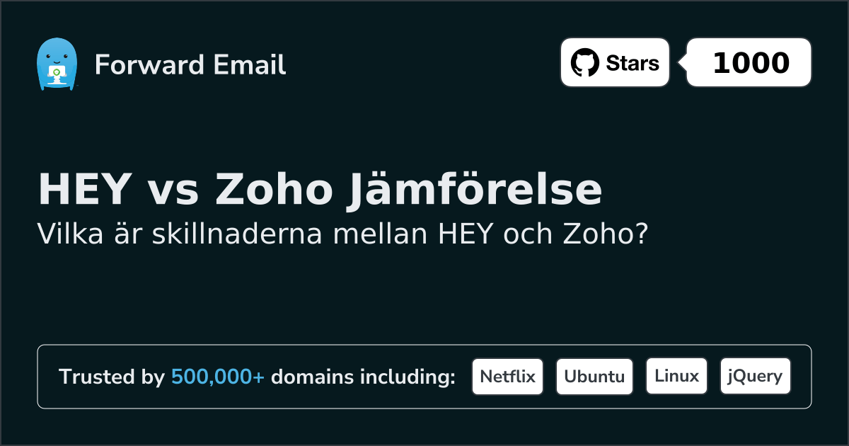 HEY"Vi har äntligen fixat din e-post + kalender!" | mot. | Zoho"Säker affärs-e-post för din organisation" |