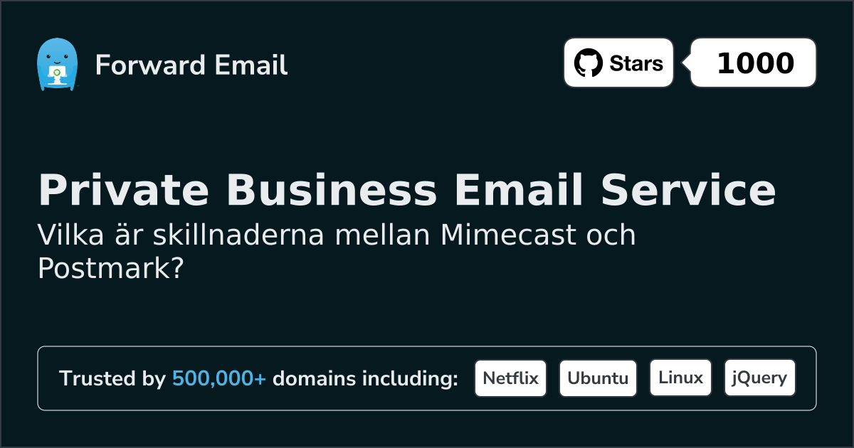 Mimecast"E-post- och samarbetssäkerhet" | mot. | Postmark"E-postleveranstjänsten som folk faktiskt gillar" |