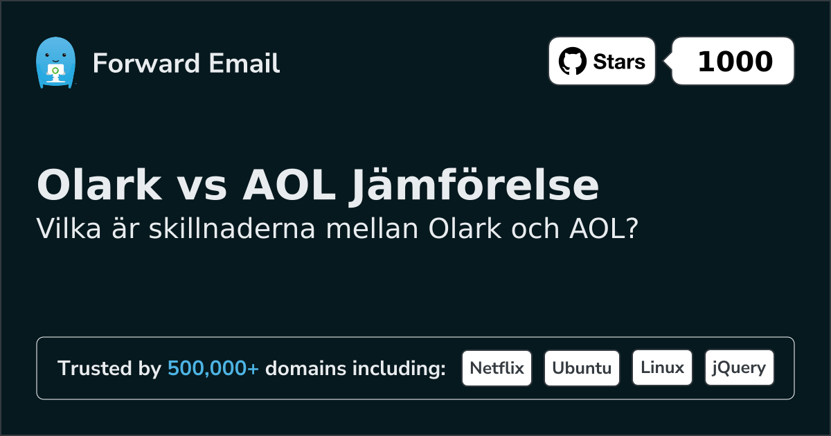 Olark"Kunderna vill prata med dig. Gör det enkelt." | mot. | AOL"AOL Mail är en gratis webbaserad e-posttjänst som tillhandahålls av AOL, en division av Yahoo! Inc." |