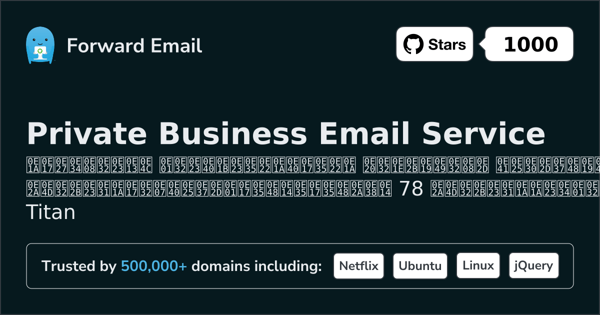 Forward Email⭐ ที่ต้องการอีเมล์สำหรับทุกคน | $3/mo | 10 GB pooled | 50 MB | ใช่ | ใช่ | ใช่ | ใช่ | ทีทีไอ | ใช่ | ใช่ | ใช่ | ใช่ | ⚠️ Opt-in | ใช่ | ใช่ |