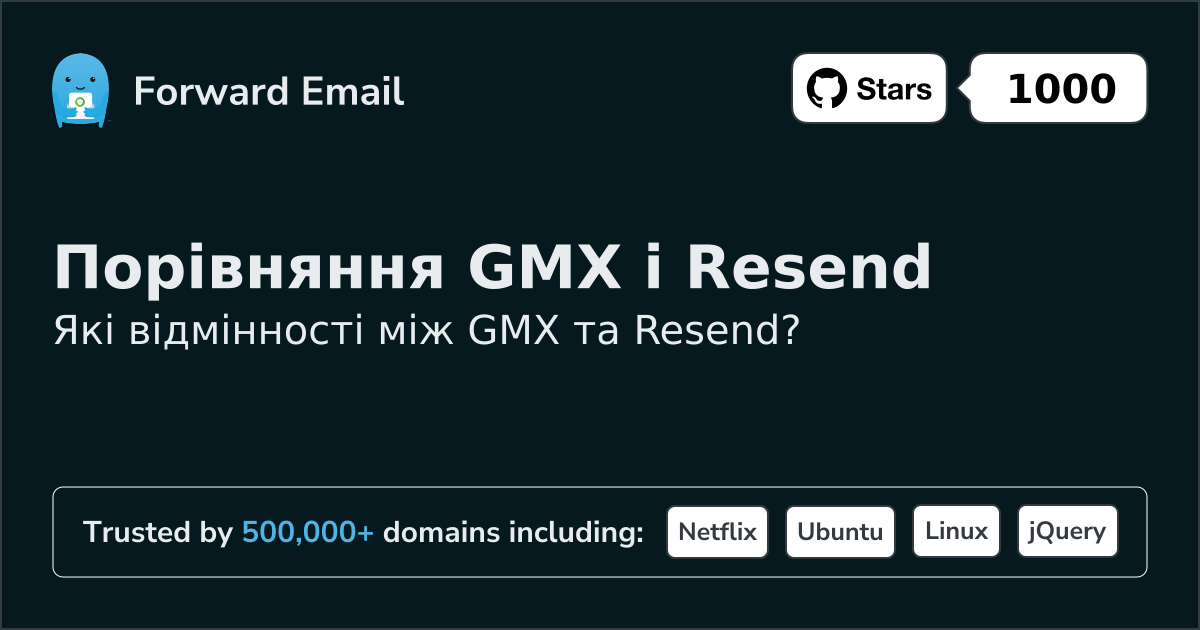 GMX"Швидко створіть безкоштовний обліковий запис електронної пошти" | проти | Resend"Електронна пошта для розробників" |