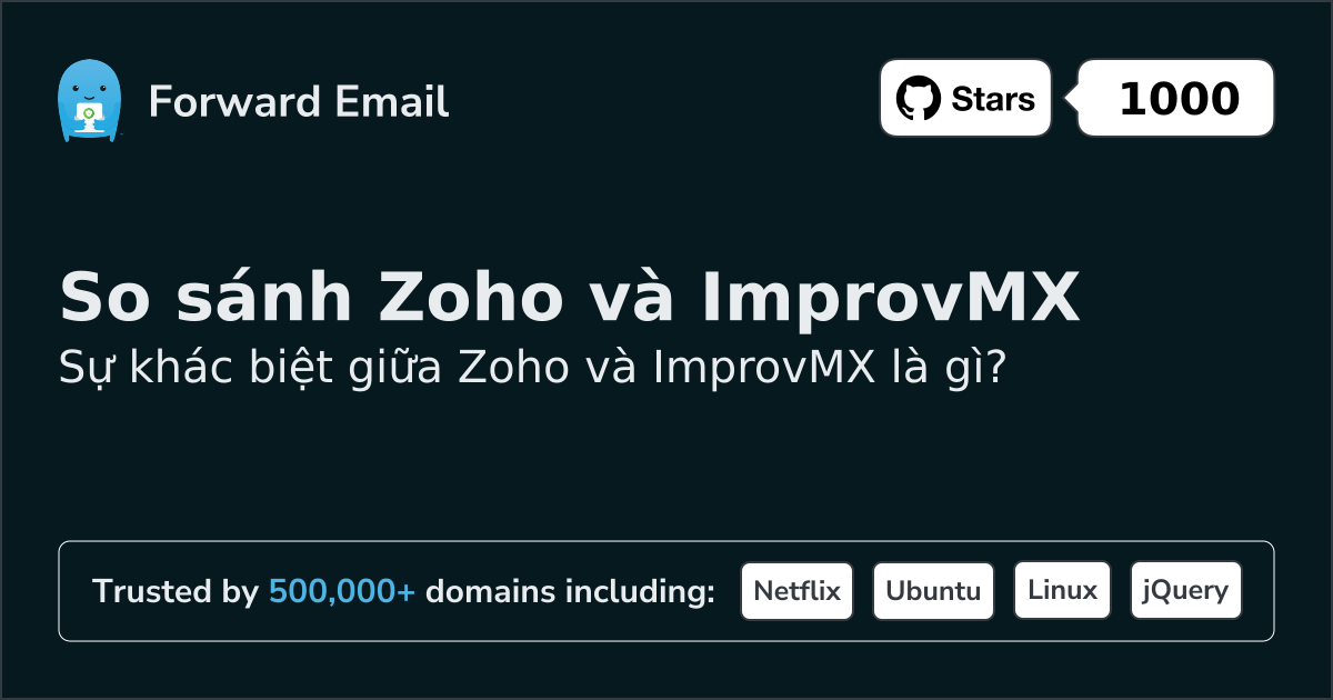 Zoho"Email doanh nghiệp an toàn cho tổ chức của bạn" | so với | ImprovMX"Tạo bí danh email miễn phí cho tên miền của bạn" |