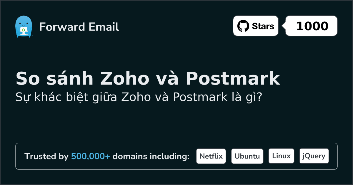 Zoho"Email doanh nghiệp an toàn cho tổ chức của bạn" | so với | Postmark"Dịch vụ gửi email mà mọi người thực sự thích" |
