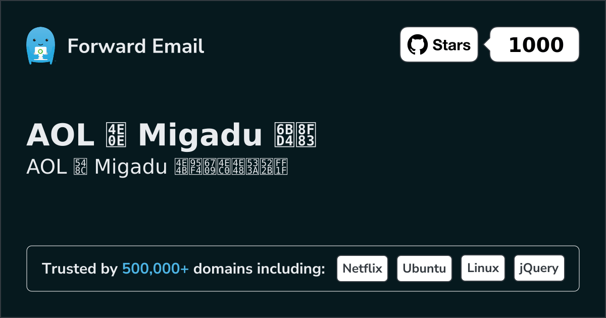 AOL"AOL Mail 是由 Yahoo! Inc. 旗下的 AOL 提供的免费基于网络的电子邮件服务。" | 对比 | Migadu"丢失的电子邮件" |