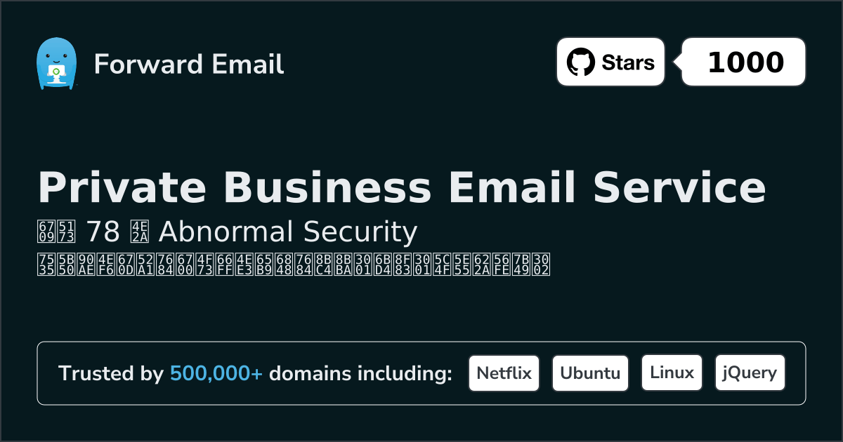 Forward Email⭐ 首选给所有人的电子邮件 | $3/mo | 10 GB pooled | 50 MB | 是的 | 是的 | 是的 | 是的 | 电信技术 | 是的 | 是的 | 是的 | 是的 | ⚠️ Opt-in | 是的 | 是的 |