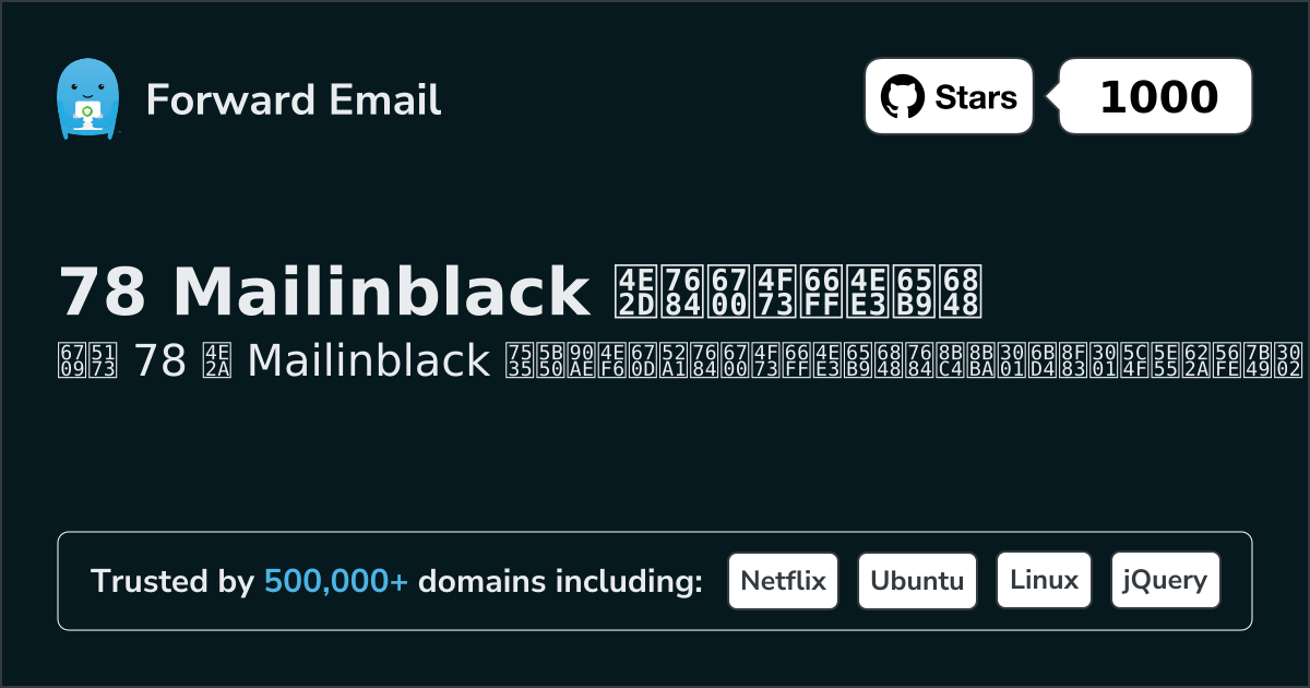 Forward Email⭐ 受到推崇的给所有人的电子邮件 | $3/mo | 10 GB pooled | 50 MB | 是的 | 是的 | 是的 | 是的 | 电信技术 | 是的 | 是的 | 是的 | 是的 | ⚠️ Opt-in | 是的 | 是的 |